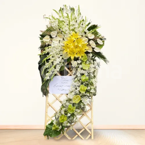گل آنتوریوم : 30 شاخه گل گلایل : 50 شاخه گل اورینتال : 5 شاخه گل لیسیانتوس : 4 دسته عروس هلندی : 1 دسته